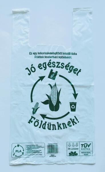 Megújuló forrásból származó, kukoricakeményítő alapú ingvállas bevásárló táska. Biológiailag lebomlik. Mérete: 300 + 2 x 80 x 500 x 0,023 mm (szélesség + 2 x oldalredő x hosszúság x vastagság) A legkisebb választható mennyiség: 100 db, 500 db-os kiszerelés esetén kedvezőbb az ára.