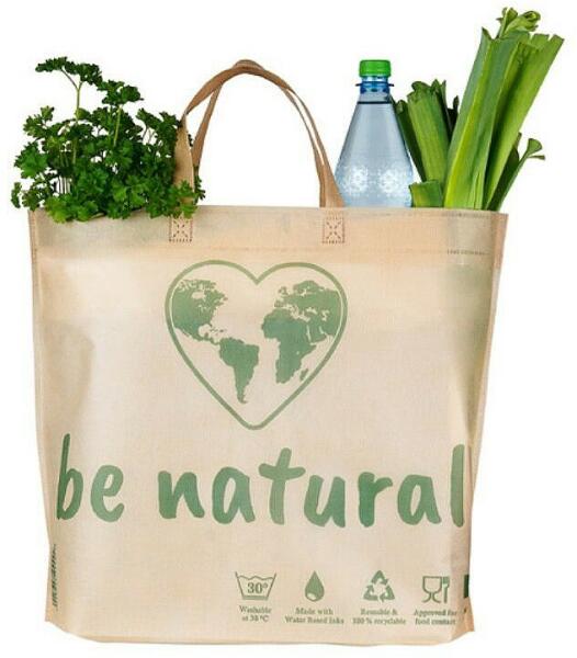 Be Natural PP nem szőtt anyagú, erős, többször használható bevásárlótáska, környezetbarát és mosható. Méret: 500 x 400 + 75 mm
