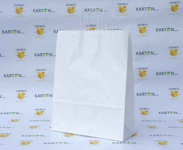 Sodrottfüles papírtáska, nyomatlanul. Praktikus, többször és különböző célokra használható. Olyan termékek szállítására alkalmas melyek nem nedvesek és nem túl nehezek. Kiszerelés: 200 db/karton Anyaga: 100 g/m2 fehér nátronpapír A feltüntett ár tartalmazza a kiterjesztett gyártói felelősségi díjat.