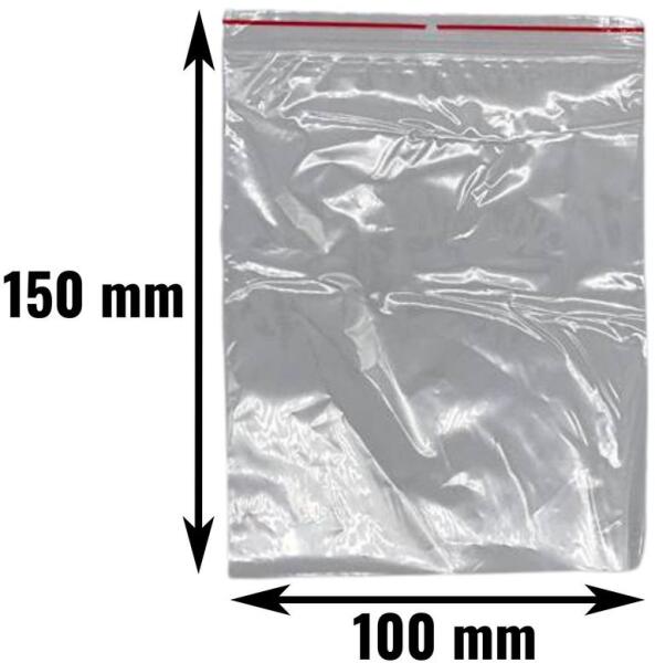 Simítózáras tasak méret: 150 x 220 mm űrtartalom: 1 liter kiszerelés: 100 db vastagság: 35 mikron