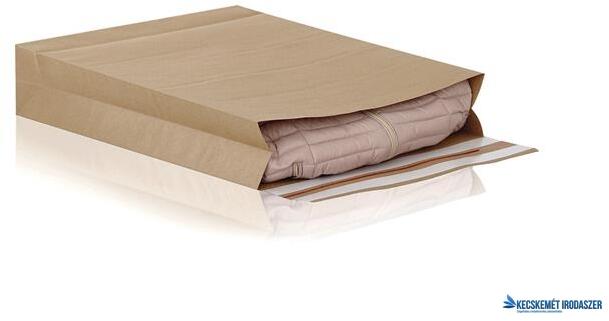 Sodrottfüles papírtáska, nyomatlanul. Praktikus, többször és különböző célokra használható. Olyan termékek szállítására alkalmas melyek nem nedvesek és nem túl nehezek. Kiszerelés: 250 db/karton Anyaga: 100 g/m2 barna nátronpapír A feltüntett ár tartalmazza a kiterjesztett gyártói felelősségi díjat.