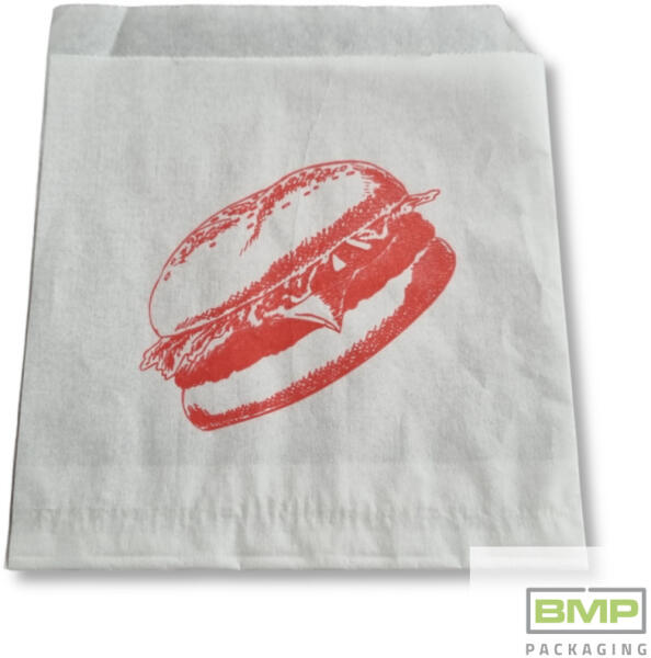 Zsírálló papírtasak hamburger, gyros, kebap és egyéb hasonló gyorsételek felszolgálásához. Méret: 150 x 170 mm Egy doboz 6000 db tasakot tartalmaz. Az általános grafika mellett akár egyedi nyomattal is rendelhető! Ilyen esetben kérd ajánlatunkat!