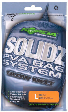 Korda Solidz Lassan Oldódó PVA Tasak L Lassú olvadás, jellemzi távoli és mélyvízi horgászathoz ideális Erősebb, ideális nehéz ólmokhoz Oldódás teljes mértékben tiszta, maradékok és aromák nélkül Dobás során is stabil marad Kiváló minőségű anyagból A Korda Solidz Lassan Oldódó PVA Tasak egy prémium minőségű PVA tasak, amelyet a legkeményebb horgászatokhoz fejl