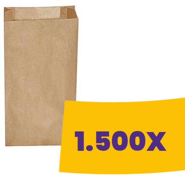 Törtfehér papírból készült papírzacskó. A legkisebb választható mennyiség: 250 db, 1000 db-os kiszerelés esetén kedvezőbb az ára.