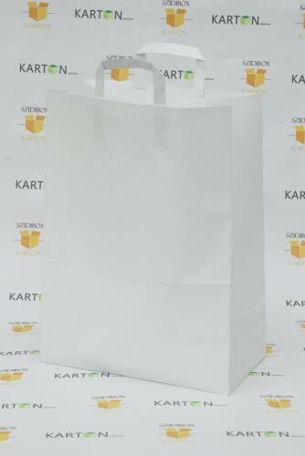 Szalagfüles papírtáska hajtogatott füllel, nyomatlanul. Praktikus, többször és különböző célokra használható. Olyan termékek szállítására alkalmas melyek nem nedvesek és nem túl nehezek. Kiszerelés: 250 db/karton Anyaga: 80 g/m2 fehér nátronpapír A feltüntett ár tartalmazza a kiterjesztett gyártói felelősségi díjat.