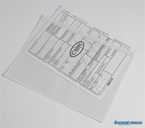 Árukísérő tasakok tökéletes védelmet és egyszerű, könnyű kezelést biztosítanak a logisztikai feladatok során használatos fuvarleveleknek, árukísérő okmányoknak. Öntapadós. Szín: átlátszó Méret: 235 x 325 mm C/4-es (229x324 mm) okmányok tárolására alkalmas Csomagolási egység: 500db/csomag