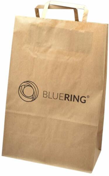 SZALAGFÜLES PAPÍRTÁSKA 26X12X36CM BLUERING BARNASzalagfüles, nátronpapírból készült papírtasak. Alapanyag: 70g kraft Méret: 26x12x36 cm Talp szélesség: 12 cm Teherbírás: min. 6 kg (max. ~18 kg) gyűjtő: 250 db / karton Katalóguskód: 43063