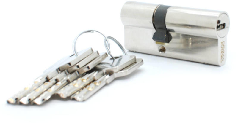 HENGERZÁRBETÉT 30/65 5K. FURTK, M. NIKK ANBO 2300 6db biztonsági csappal 5db nikkelezett kulcs Felfúrás elleni védelem (edzett acél vagy inox fúrásgátló csapok a henger mindkét oldalán) Szálcsiszolt matt nikkel kivitel Sárgaréz ház és hengercsapok, inox rugók a hosszú élettartam érdekében Szinterezett acélból készült tolókavivő, ami 30°-ban megáll a henger oldalán,