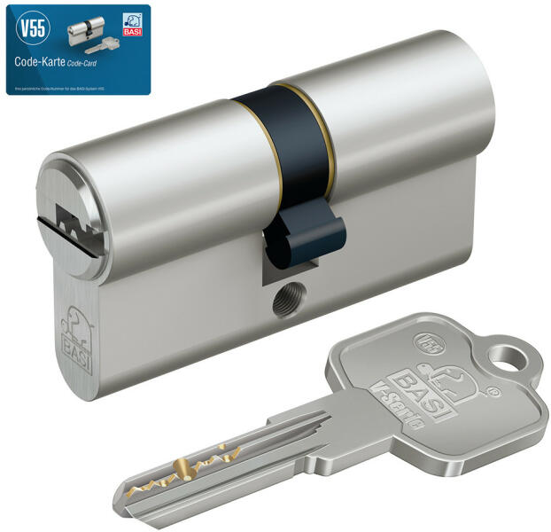 Basi-V50 35/40 fogazott kulcsos zárbetét standard cilinder betétréz test, tartós nikkel bevonattal5 csapos zárrendszer (27mm-től)DIN EN 1303 szerint tanúsított zárbetétmegerősített és hosszított kulcsnyakvastagabb zárpajzs esetén is használhatópapírdoboz csomagolás3 darab gyári fogazott kulccsal ésrögzítő csavarral áruljuk