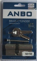 HENGERZÁRBETÉT 40/55 5K. FÚRTK. M. NIK. ANBO BLISZTERES 6db biztonsági csappal 5db nikkelezett kulcs Felfúrás elleni védelem (edzett acél vagy inox fúrásgátló csapok a henger mindkét oldalán) Szálcsiszolt matt nikkel kivitel Sárgaréz ház és hengercsapok, inox rugók a hosszú élettartam érdekében Szinterezett acélból készült tolókavivő, ami 30°-ban megáll a henger old