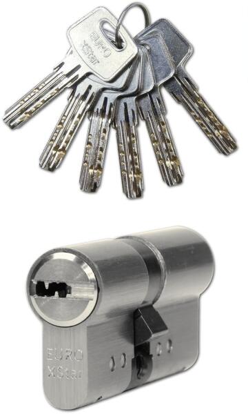 Króm felületű, 5 db aktív csappal készülõ zárbetét, 3 db fogazott kulccsal.