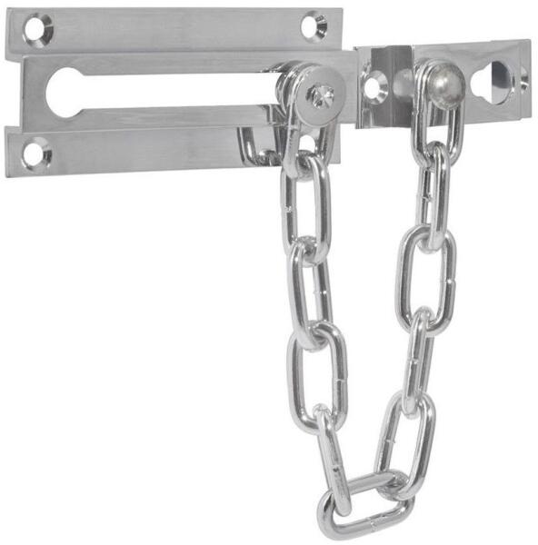 Biztonsági ajtólánc króm kivitelben. Felszerelhető bejárati ajtóra és a tokrjára is. Műszaki adatok Anyag: Acél Kültéri használatra megengedett: Igen Hossz: 100 mm Tömeg: 150 g Mélység: 10 mm