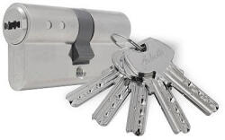 HENGERZÁRBETÉT 30/35 5K. FÚRTK. M. NIKK ANBO 2300 6db biztonsági csappal 5db nikkelezett kulcs Felfúrás elleni védelem (edzett acél vagy inox fúrásgátló csapok a henger mindkét oldalán) Szálcsiszolt matt nikkel kivitel Sárgaréz ház és hengercsapok, inox rugók a hosszú élettartam érdekében Szinterezett acélból készült tolókavivő, ami 30°-ban megáll a henger oldalán,