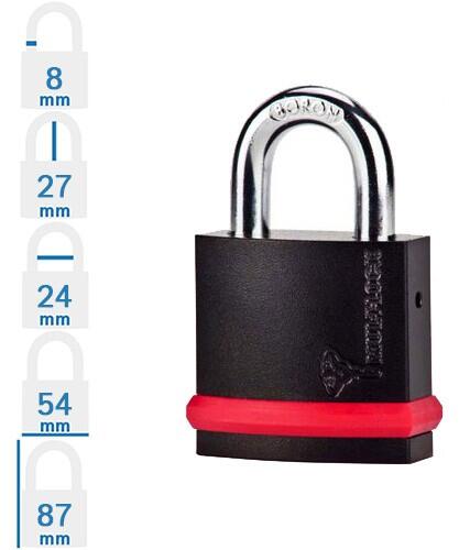 Azonos zárlatú Mul-T-Lock NE szériás lakatok egység kulcsos kivitelben, azaz mindegyik lakatot azonos kulcs nyit. Mul-T-Lock biztonsági lakat edzett bóracél kengyellel: pontfuratos kulcs, csapos zárszerkezet. Védett kulcs profil, kulcsmásolás kizárólag a zárbetéthez tartozó kódkártyával. Méret: lásd a képen. Az itt megrendelt azonos zárlatú lakatok mindegyike egy kulcs mű