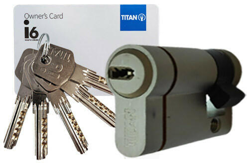 A Titan i6 egy közepes biztonsági szinttel bíró, mégis abszolút megfizethető áron elérhető zárbetét. Edzett acél csapjainak köszönhetően rendelkezik fúrásvédelemmel, ezen csapokból 6 db aktívat találunk 1 sorban elrendezve. A csapok között speciális kialakítású csappárok is vannak, melyek a letapogatás és a bumping key elleni védelemért felelnek. 5 db hosszított n