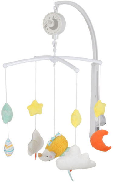 Kiságyra szerelhető elektromos zenélő körforgó plüss figurákkal. A játék segíti a picik szem-kéz koordinációjának fejlődését és megnyugtatja őket elalvás előtt. Gondoskodik a baba szórakoztatásáról és megnyugtatja elalvás előtt, valamint fejleszti a vizuális képességeit. Újszülött kortól használható, a játék elindításakor a figurák forognak és dallamot j