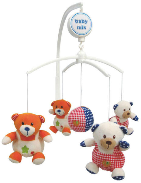 Baby mix zenélő forgó A kiságyra szerelhető játékot újszülött kortól tervezték, egyaránt fejleszti a gyermek látását és hallását, a nyugtató zene és a mozgó figurák pedig segítenek az elalvásban. Az élénk színek vonzzák a baba tekintetét, még a kellemes dallam nyugtató hatású. Elem nem szükséges a működéshez, felhúzható mechanikával rendelkezik. Bármikor