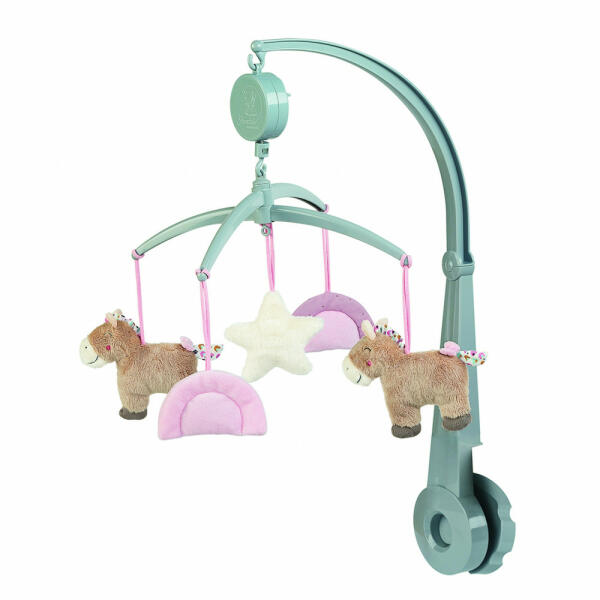 Az imádnivaló zenélő-forgó, aranyos bújós figuráival – amelyek finoman forognak és mozognak az altatódal ritmusára – nyugodt alvást és édes álmokat biztosít. A zenélő-forgó egyszerűen és biztonságosan rögzíthető a kiságyhoz, bölcsőhöz vagy a járókához, a figurák pedig könnyen eltávolíthatók és mosógépben moshatók. - ideális a hallás és a vizuális é