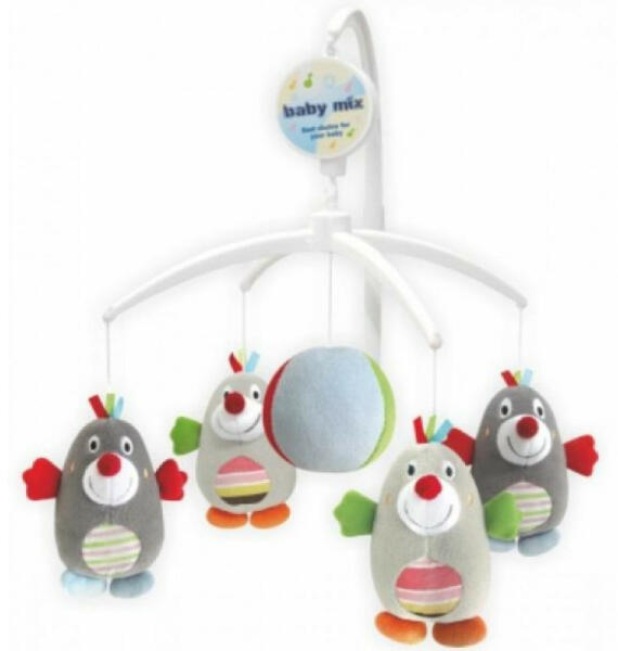 Kiságy fölé rögzítve lágy dallamot játszik és forog, így a kis barátok jókedvre derítik a babát a kiságyban is! Tulajdonságok: - annak érdekében, hogy megakadályozzák az esetleges sérüléseket, távolítsa el ezt a játékot, amikor a gyermek már négy lábon mászik - kérjük, tartsa meg a leírást a lehetséges kérdések miatt - könnyen rögzíthető kiságyra - puha, s