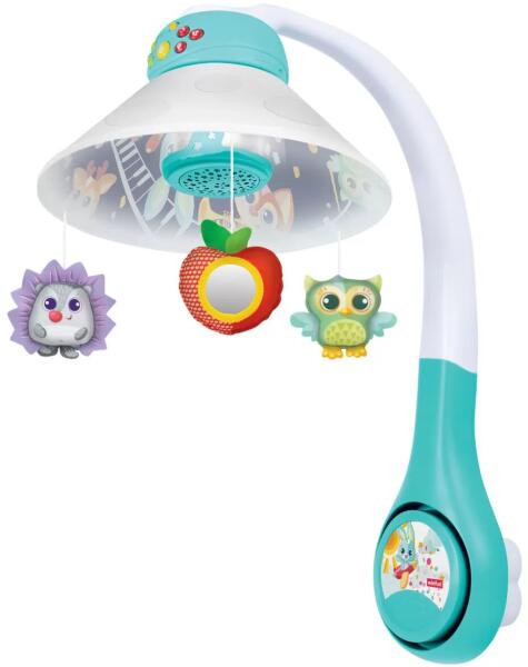 Zenélő körforgó Körhinta a kiságy fölé világító vetítővel. A legkisebb gyermekek számára ajánlott. Megnyugtatja a gyermeket alvás előtt. A körhinta csillagos fényeket vetítt, amely színeket vált, és éjszakai lámpa funkcióját is ellátja. A gombokkal a dallamok, a körhinta és a csillagok vetítése állíthatók. Minden funkció külön állítható. A figurák eltávo