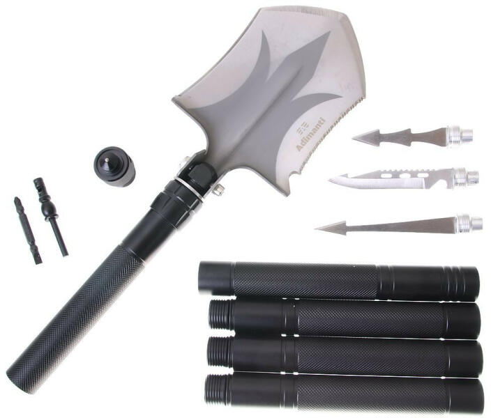 A többfunkciós és praktikus ásó 8 szerszámmal rendelkezik, és minden helyzetben nélkülözhetetlen segítőtárs lesz. Lapát anyaga Hadfield rozsdamentes acél Hosszabbító anyaga Alumínium Lapát méret 12,2 x 16,5 cm Teljes hossz 118 cm Vastagság 5 mm Súly 1600 gramm Az Adimanti HK002 egy többfunkciós eszköz, amely számos, a civilizáción kívüli túléléshez szükséges eszk