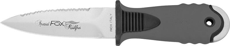 Penge acél: 420C rozsdamentes acél. Keménység: HRC 54-56. Markolat: gumi + szürke Nylon. Pengehossz: 11 cm. Teljes hossz: 21,5 cm. Pengevastagság: 4 mm. Súly: 145 gr. (FOX)