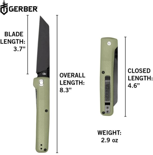 Kompakt és karcsú felépítés. Egyedi tengely. Teljes panel fordított tanto penge. Sima él. Megfordítható hüvelykujj csap. Megfordítható zsebcsipesz. Texturált markolat. Teljes hossz: 8, coll (GERBER)
