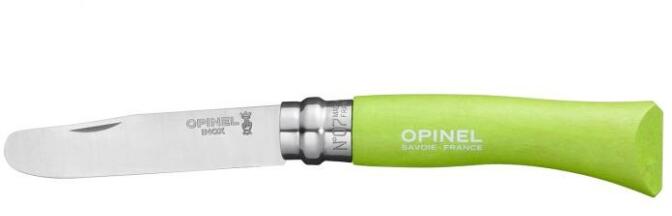 OPINEL My First Opinel No. 07 Inox Zöld Fafaragás, vagy a természet feltárása - a My first Opinel-el a gyerekek biztonságban megismerhetik a zsebkések világát. Lekerekített hegyű, behajtható rozsdamentes acél pengés zsebkés, minőségi festet gyertyánfa markolattal. Gyerekeknek kifejlesztve! A biztonságos használatról a szabadalmaztatott Virobloc biztonsági zárógyűrű gondos