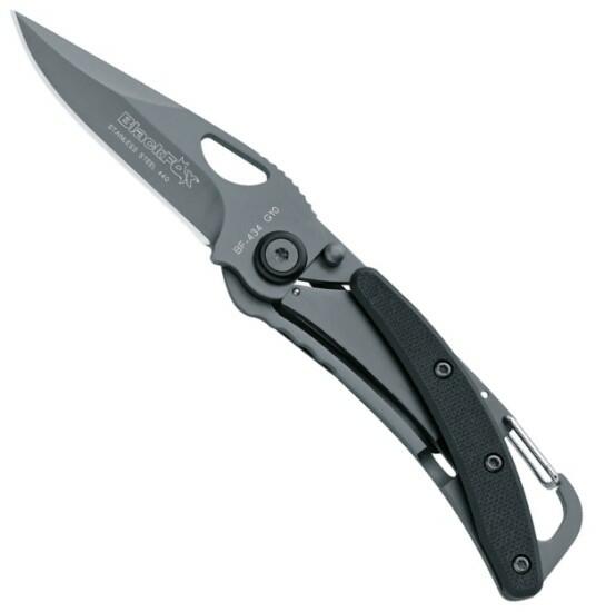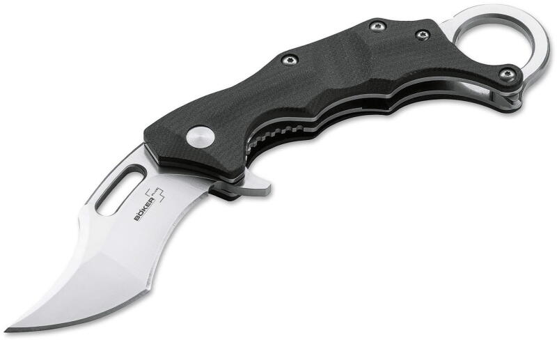 A Boker Plus Strike egy robusztus kés mindennapos használatra. A karcsú markolat acéllemezek köré épül, amelyek könnyű alumíniummal vannak bevonva, durva felülettel a jobb tapadás érdekében. A jól megtervezett hüvelykujj-emelkedés mély hornyai biztonságos kezelhetőséget biztosítanak. A biztonsági zár a véletlen elindulás nyitás ellen védelmet nyújt, amikor a kés be v