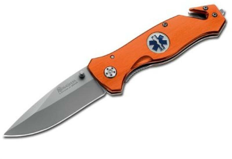 A Magnum bicska kinyitva 20,3 mm, aluminium markolatú, 440 acélpengés zsebkés. A markolatán a mentősök nemzetközi emblémájával. A késen van még üvegtörő, biztonsági öv vágó és nadrágklipsz. A penge hossza 8,6 cm A penge vastagsága: 2,8 mm Penge anyaga: 440A Markolat anyaga: galvanizált alumínium Súlya: 122 g Teljes hossza: 203 mm A BÖKER MAGNUM kések elegáns fém doboz