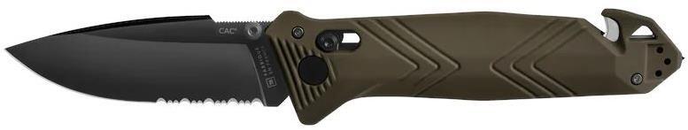 Böker Plus Strike Coyote Spearpoint zsebkés A Strike gyártó talán legnépszerűbb rugóskés szériája. A penge a Japánban kifejlesztett AUS-8 acélból készült markáns kőmosással ellátva, így hangsúlyozva a finom taktikai áthallást. A lándzsahegy kialakítás jó beszúróképességet eredményez. A markolat masszív acél oldallemezekkel rendelkezik, melyeket coyote színű alu