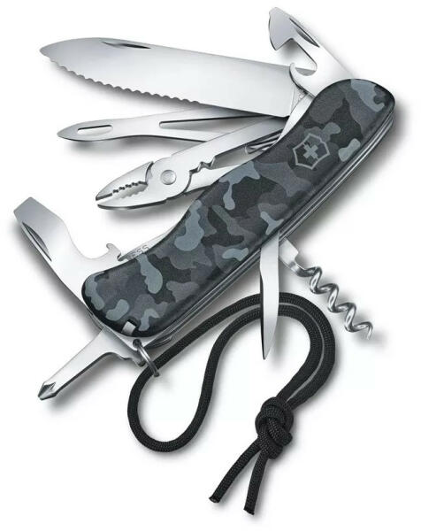 A VICTORINOX Swiss Army Skipper zsebkés (Navy Camouflage) egy sokoldalú és tartós eszköz, amelyet kifejezetten hajósoknak és vízi sportok kedvelőinek terveztek. A 18 funkcióval rendelkező kés, beleértve a zárható pengét, kötélbontót, csavarhúzót és fogót, minden helyzetben megbízható társnak bizonyul. Rozsdamentes acél pengéi és ergonomikus, csúszásmentes markolata g