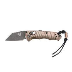 The Benchmade 5370FE Shootout is a lightweight double-action automatic knife that features a tanto blade made of ultra-hard CPM-CruWear steel , a CF-Elite handle and a tungsten carbide striker for instant glass breaking. The lightweight, handy design and premium materials make it an ideal knife for uniformed services and discerning users looking for a reliable tool. Benchmade 5370FE Shootout - a l