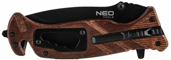 Összecsukható túlélőkés, 63-107, NEO - a 22 cm hosszú és 9 cm-es pengehosszúságú, többfunkciós eszköznek 6 alkalmazási lehetősége is van: kés, tűzkő, síp, csavarkulcs, biztonsági övvágó kés és ablakbetörő kalapács. A kést érdemes magunkkal vinni egy hegyi kirándulásra, erdei táborozásra vagy tereptúrára. Jól használható kézi szerszám gyors és átmeneti j