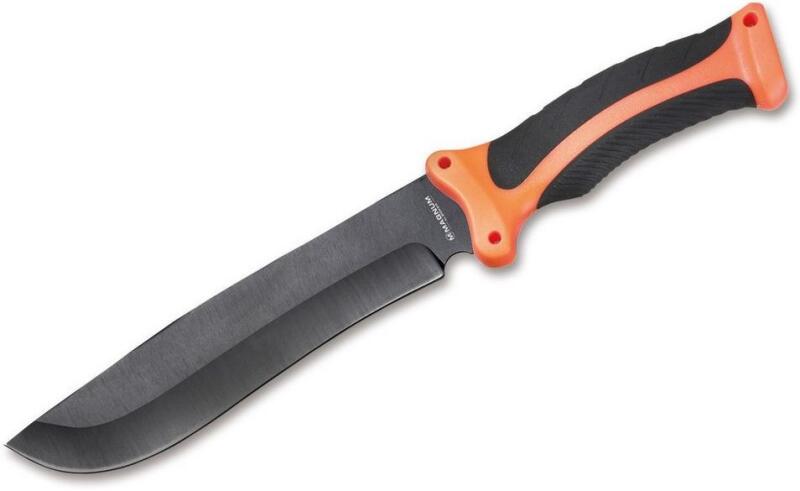 Bozótvágó kés rövid pengével, gyöngyvászon tokkal Teljes méretű bozótkésként vagy kis macheteként a Magnum FFB egy tartós használati kés, amelynek kialakítása a funkcionalitásra és a praktikus használatra összpontosít. A narancssárga szintetikus markolat gumibetéttel még nedves állapotban is biztonságos fogást biztosít. A praktikus nylon tok szúrás elleni védelemm
