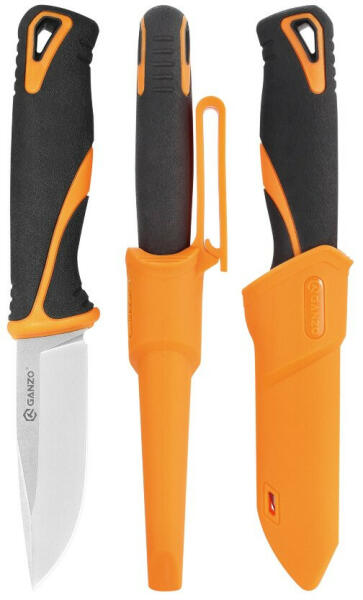 Ganzo G807 fix pengéjű kés 9CR14 rozsdamentes acél pengével, ergonómikus csúszásgátló nyéllel kempingezés vadászat horgászat kültéri EDC kés hüvellyel. Kés típus Fix penge Penge él Sík Penge anyaga 9CR14 Penge acél típusok leírás Penge keménység 56 HRC Penge szín Szürke Markolat anyaga PP+TPR Szín Fekete és narancs Hossz 205 mm Penge hosszúság 88 mm Penge vastags