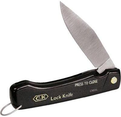 C. K. Összehajtható zsebkésC9035L Zsebkés birkaláb pengével 110 mm hosszú Hegyes pengével fekete műanyag boritással és sárgaréz szegeccsel. Műszaki adatok: Súly: 100 g