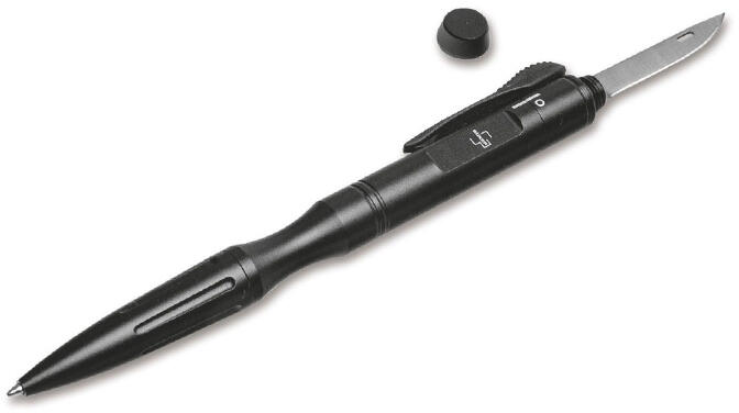 Böker Plus OTF Pen taktikai EDC kés A Böker mindig is nagy hangsúlyt fektetett a taktikai kiegészítők EDC felhasználásba integrálásába. Hiszen a világunk is ebbe az irányba hajlik. A toll teste könnyű, de nagyon kemény alumíniumból készült. Kialakítása kényelmes és nemcsak az írás alkalmával. A toll másik felében egy kés található, mely csomagok és madzagok, heved