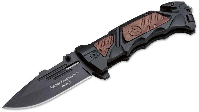 Böker Plus AK-14 zsebkés Az AK-47 gépkarabélyokat Mihail Tyimofejevics Kalasnyikov tervezte. Ezért szokták Kalasnyikovnak is nevezni a fegyvert. 1947-ben készült el a végleges verzió, de a szovjet fegyveres erők csak 49-től rendszeresítették. Azóta ez a világ legnépszerűbb fegyvere. Egyszerű felépítése és megbízhatósága legendás. A Böker Plus e fegyver és Mihail Tyimof