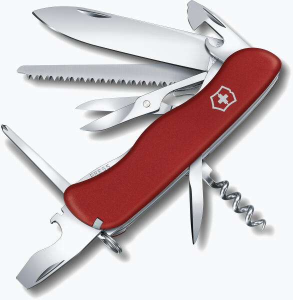 Victorinox Outrider nagyméretű zsebkés ollóval, Phillips csavarhúzóval, 14 funkcióval, piros markolattal. Termék jellemzői: Rozsdamentes acélból készült bicska, külseje műanyag borítású. Kétoldalasan gravírozható a pengéje, körvonalasan. Sajátmárkás kartondobozába csomagolva szállítjuk. Gravírozási technika : Körvonalas (mechanikus) Mérete (összecsukott állapotba