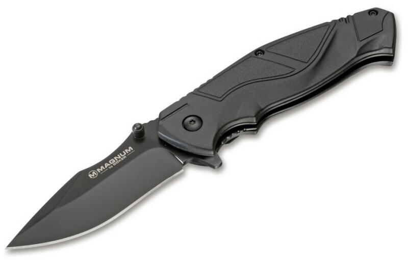 Böker Magnum Advance All Black Pro zsebkés A Böker Magnum Advance sorozat taktikai stílusú darabja, mely egyúttal egy magasabb szintre is emeli a szériát. Tökéletes EDC eszköz. A penge Böhler N695 (440C) rozsdamentes acélból készült, csillogásmentesített fekete bevonattal. A nyitást nyitószemölcsök segítik, így akár egy ujjal is könnyedén használatba helyezhető a penge