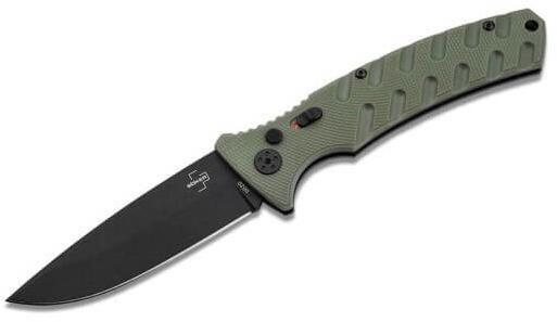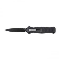 The Benchmade Infidel 3300BK is an automatic tactical knife , featuring a D2 tool steel blade, a large deployment button and an aircraft-grade milled aluminum handle . The Benchmade Infidel 3300BK is a large OTF (out of front) automatic knife , designed for uniformed services and everyday use. Tactical head The knife has a slim dagger profile head, made of hard D2 tool steel hardened to 60-62 HRC