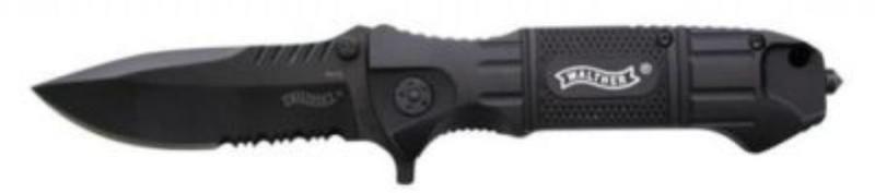 Egykezes kivitel, hegyes pengével, aluminium markolattal, fogazott élrész, üveg törő hegy, állítható öv klipsz. 440 Stainless Steel, 85mm-es penge, 199mm-es nyitott és 114mm-es csukott méret, 164g