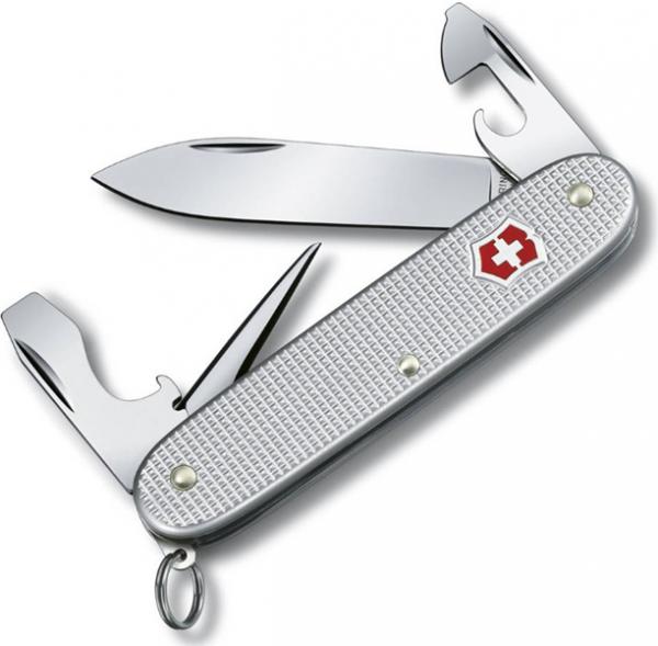 Victorinox Pioneer Alox zsebkés bordázott panelekkel, 8 funkcióval. Funkciók: nagy penge lyukasztó ár konzervnyitó csavarhúzó 3 mm üvegnyitó csavarhúzó 7,5 mm huzalcsupaszító kulcstartó karika Tulajdonságok: Pengehossz: 70 mm Markolatanyag: Alox (A bizonyíték a Victorinox elkötelezettségére a tartósság, az erő és a mérnöki tervezés iránt, az Alox zsebkések utat mutat
