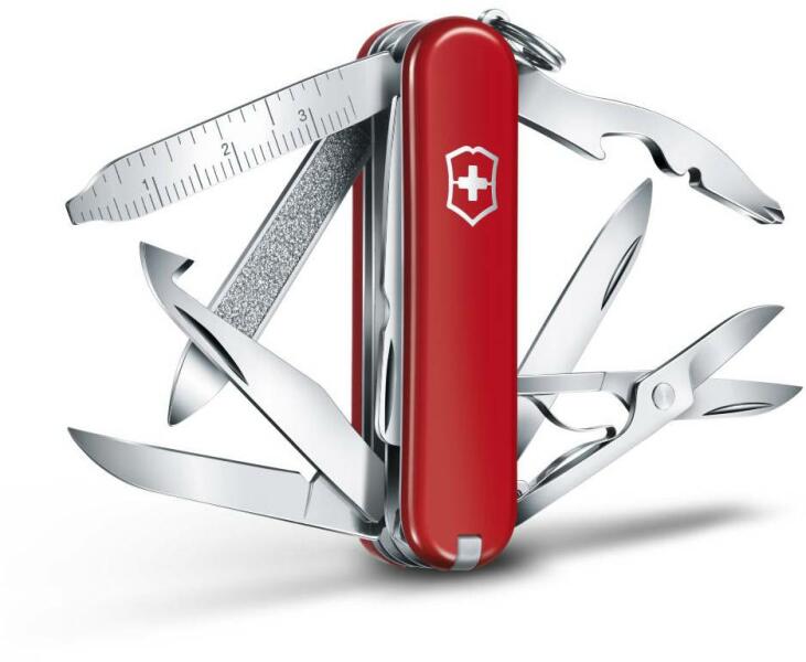 Kisméretű zsebkés 17 funkcióval, piros színben. Kicsi, mégis hatalmas bajnok minden nap. Tartalmaz narancshámozót és körömágybőr feltoló eszközt is. Funkciók: fogvájó vagy csipesz kulcstartó karika túlnyomásos golyóstoll kis penge penge narancshámozó kaparó körömágybőr feltoló eszköz üvegnyitó Phillips csavarhúzó 0/1, mágneses huzalcsupaszító körömreszelő k