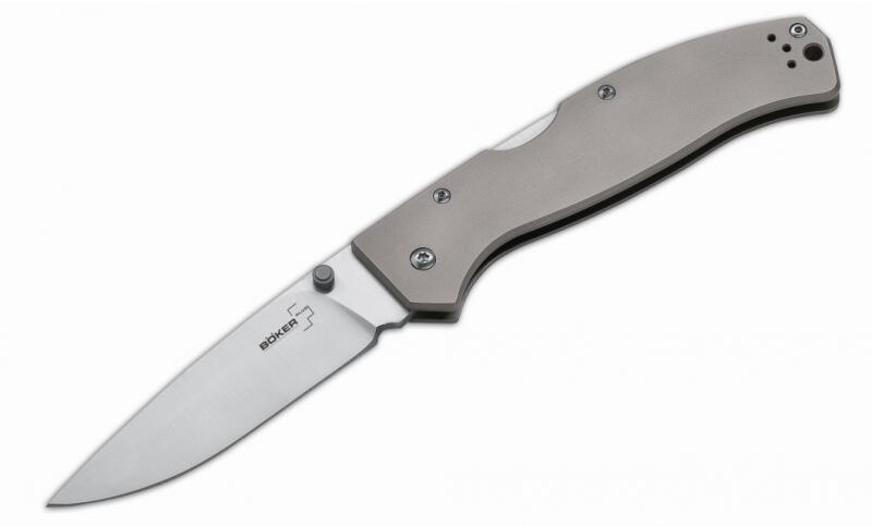 Böker Plus 01BO188 Titan Drop zsebkés. Tulajdonságok: Pengeanyag: 440C rozsdamentes acél Pengehossz: 9,3 cm Markolatanyag: titán Markolathossz: 11,9 cm Teljes hossz: 21,2 cm Súly: 120 g Nyitás: kétoldali nyitószemölcs Zár: hátsózár Zsinórfurat Övcsipesz További gyártói információk: A Böker Plus Titan Drop nagy, de karcsú munka és többcélú kés, bár lapos kialakításán