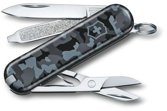 A Victorinox Classic SD svájci bicska Navy Camouflage stílusos és praktikus eszköz mindennapi használatra. 7 funkcióval rendelkezik, köztük kis pengével, ollóval, körömreszelővel és csavarhúzóval. Kompakt mérete és könnyű súlya miatt ideális zsebben vagy kulcstartón hordozható, garantálva, hogy mindig kéznél legyen. A Victorinox Classic SD Navy Camouflage a svájci bicsk