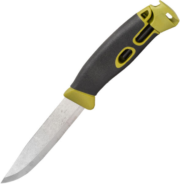 A Morakniv Spark a legnépszerűbb társmodellre épül. A tartós penge svéd rozsdamentes acélból készül, könnyen karbantartható és nagyon jó vágási és csiszolási tulajdonságokkal rendelkezik. A fogantyú TPE gumiból készül, ez az anyag garantálja a kéz nagy tapadását. A tok polimerből készül, és praktikus övcsipesszel van felszerelve, amellyel a kés könnyen rögzíthe