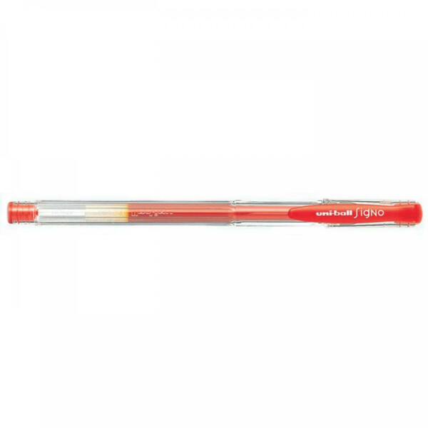 Rozsdamentes acél hegyű, átlátszó testű, nagy betétes, a tinta színével megegyező klipszű zselés toll. Jellegzetesen lágy, fényes írásmóddal, víz és UV-álló tintával, nagy színválasztékban. Írásvastagság: 0,4 mm. Betét: UMR-5. Katalóguskód: 1524