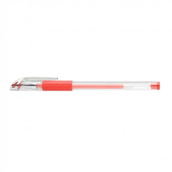 Kupakos zseléstoll, átlátszó tolltest, gumírozott fogórész. A kiegészítők (gumis fogórész, záródugó) színével megegyező írásszínek. Vonalvastagság: alapszínek - 0,5 mm; arany, ezüst - 0,7 mm. Íráshossz: 1500 m. 12DB/GYŰJTŐ Katalóguskód: 1144